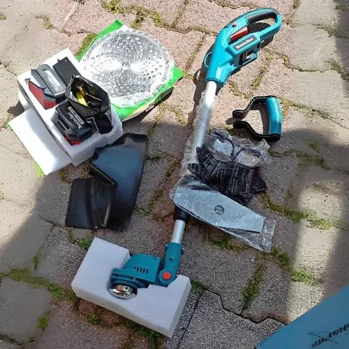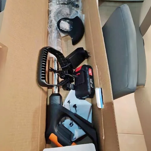 2 x 48-V-Akkus im Lieferumfang enthalten + Satz mit 4 Klingen für 4 Schnittarten. Verstellbarer Teleskoplenker.