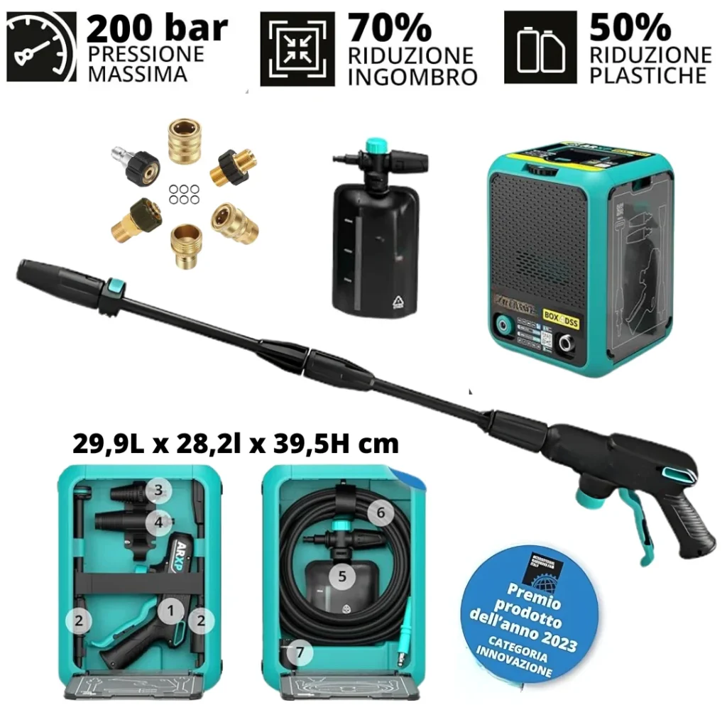 Comodità allo stato puro, funzionalità ergonomia. Direi che è una figata pazzesca, leggera e potente, attacco per bottiglia in cui mettere sapone oppure detersivo schiumogeno tubo lungo circa 10 metri con comodo filtro per impedire di rosicchiare impurità.
