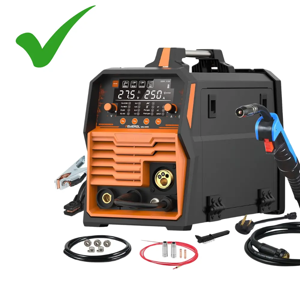 This 250A 6-in-1 welder handles MIG, Stick, TIG, flux core, spot welding, and aluminum with auto-settings for perfect welds every time.